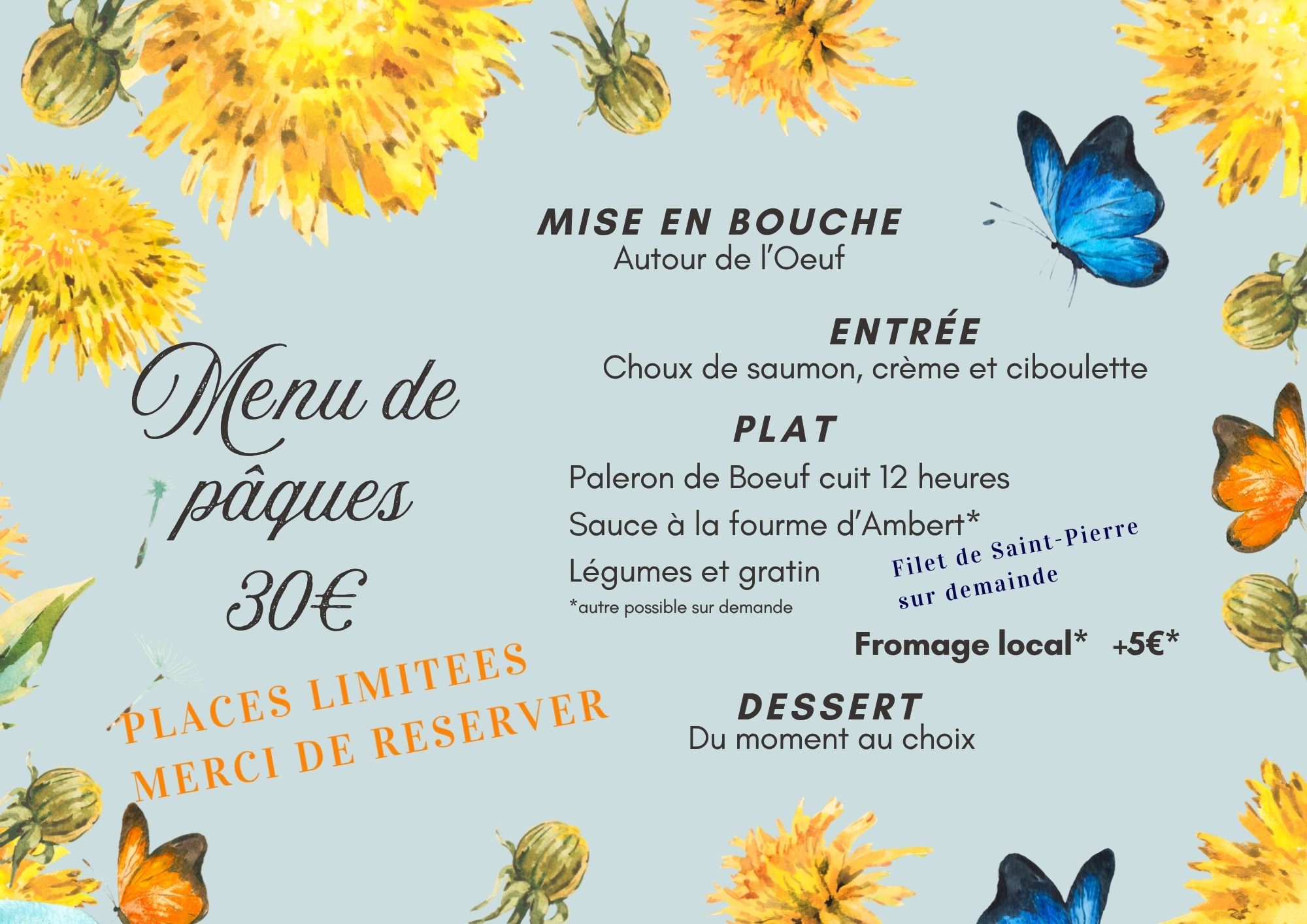 Il est proposé un menu unique mais je m'adapte à vos besoins autant que possible.